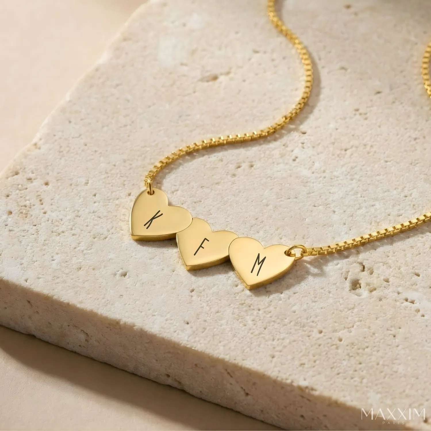 ADORÉ – a meaningful necklace with one to five hearts in the center. Each heart can be engraved with a single letter of your choice, so you can always carry your loved ones close to you.